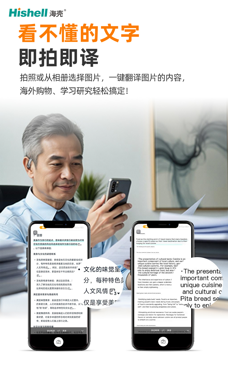 这款翻译耳机打破语言壁垒,核心搭载“即拍即译”黑科技,遇见看不懂的文字无需繁琐输入,轻松一拍就能解锁精准翻译。支持实时拍照翻译与相册图片导入翻译,操作仅需一键触发,高效又省心。无论是海外购物时解读商品说明、成分表,还是学术研究中攻克外文文献、资料,都能快速搞定。小巧便携适配多场景,告别语言焦虑,让跨语言沟通、出行、学习都畅行无阻,成为你的随身智能翻译助手。