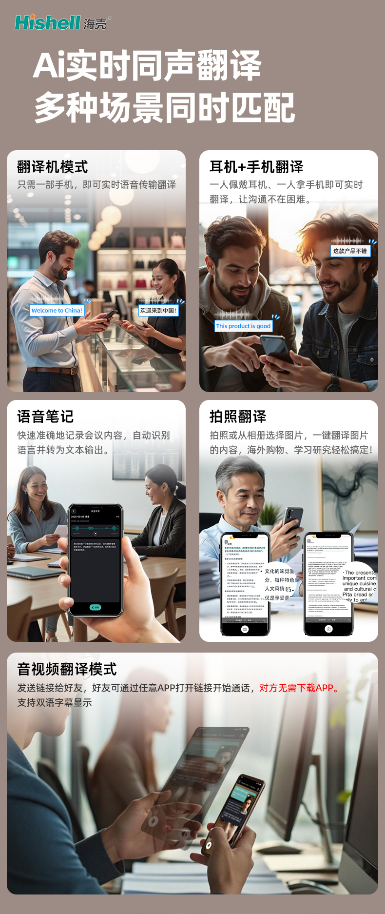 它支持多种实用模式,灵活适配不同场景。翻译机模式无需复杂操作,只需一部手机,即可实现实时语音传输翻译,随时随地开启无障碍沟通;耳机+手机翻译模式更具便捷性,一人佩戴耳机、一人手持手机,双向实时翻译,让对话流畅无阻碍,彻底解决语言沟通难题。