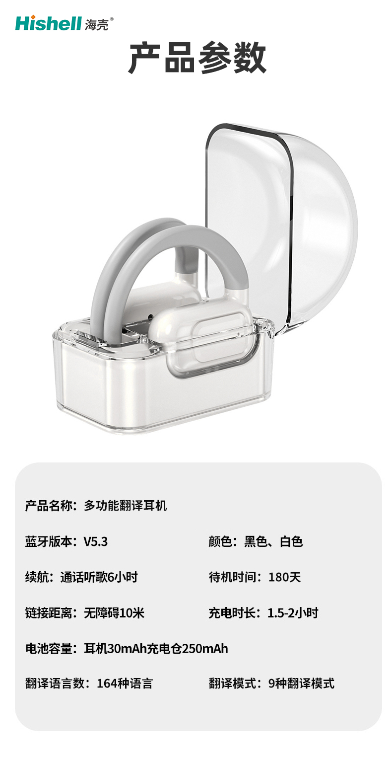 轻便舒适的佩戴设计搭配稳定的续航能力,兼顾实用性与体验感,无论是短期出行还是长期使用,都能满足需求,成为你跨语言沟通的贴心伙伴,让每一次交流都无拘无束。