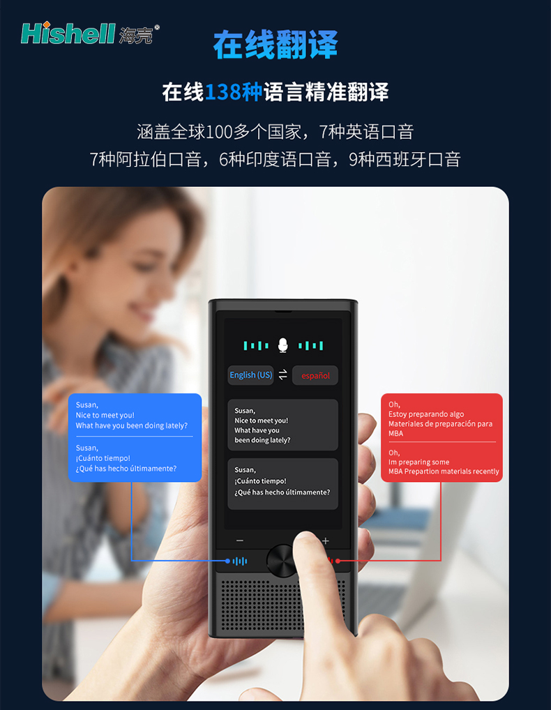 针对多口音识别难题,产品做了专项优化,可精准识别7种英语口音、7种阿拉伯口音、6种印度语口音及9种西班牙口音,有效规避口音差异导致的翻译偏差,还原最真实的表达意图。依托先进的语音识别与神经网络翻译技术,翻译响应迅速、语义精准,兼顾专业性与自然度,摆脱机械翻译的生硬感。