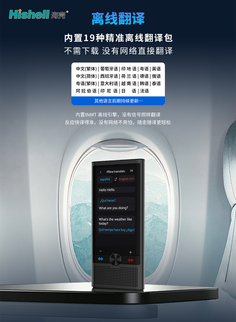 这款翻译机以强大的离线翻译能力为核心,为用户解决无网络场景下的沟通难题。设备内置19种精准离线翻译包,无需额外下载,脱离网络环境也能直接启动翻译,省去繁琐操作,上手即⽤。搭载专业INMT离线引擎,即便身处无信号区域,依旧能实现快速响应、精准翻译,打破网络限制。无论是出差旅行、户外探索,还是异国交流,无需担心网络问题,随时随地都能轻松完成语言转换,让沟通无界、出行更便捷,满足各类场景下的即时翻译需求。