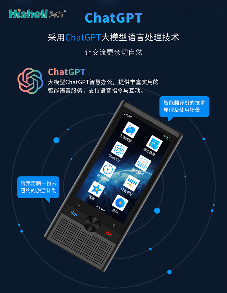 这款翻译机搭载先进的ChatGPT大模型语言处理技术,打破传统翻译的生硬壁垒,让跨语言交流更显亲切自然,仿佛与 native speaker 面对面沟通。依托ChatGPT大模型的强大算力,它不仅能实现精准快速的双语互译,还能深度理解语境、语气,避免直译带来的歧义,兼顾语言的专业性与生活化。