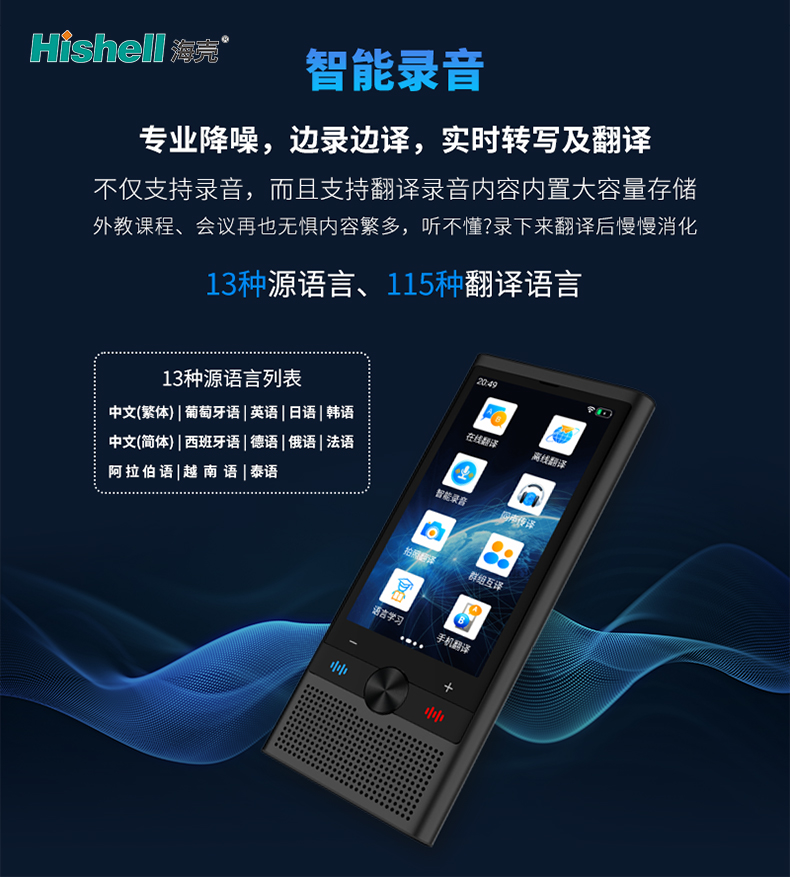核心优势在于边录边译、实时转写功能,录音的同时可同步完成文字转写与多语言翻译,无需后期繁琐操作,实现“录完即懂、译完即用”。机身内置大容量存储,无需额外存储设备,可轻松保存大量录音及翻译文件,随时调取查看、反复收听。