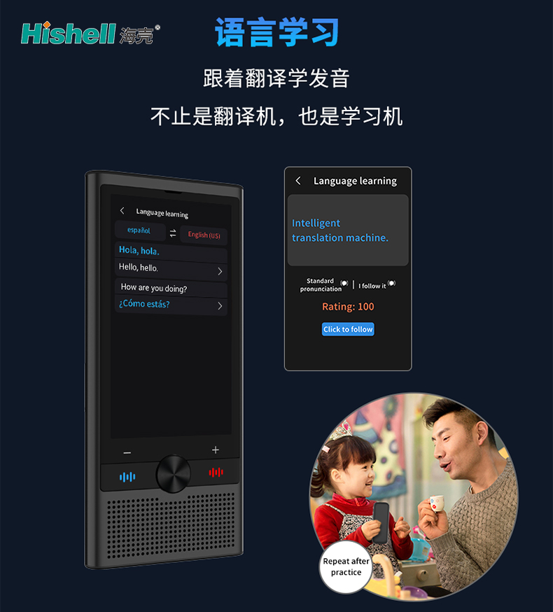 这款翻译机打破传统翻译工具的局限,不止是高效便捷的翻译助手,更是你的专属语言学习机,让语言学习不再枯燥,跟着翻译学发音,轻松攻克口语难关。它支持多语种实时互译,译文精准流畅,语音输出清晰标准,还原 native speaker 的地道语调,无论是日常交流、职场沟通还是出行应急,都能快速响应,消除语言壁垒。