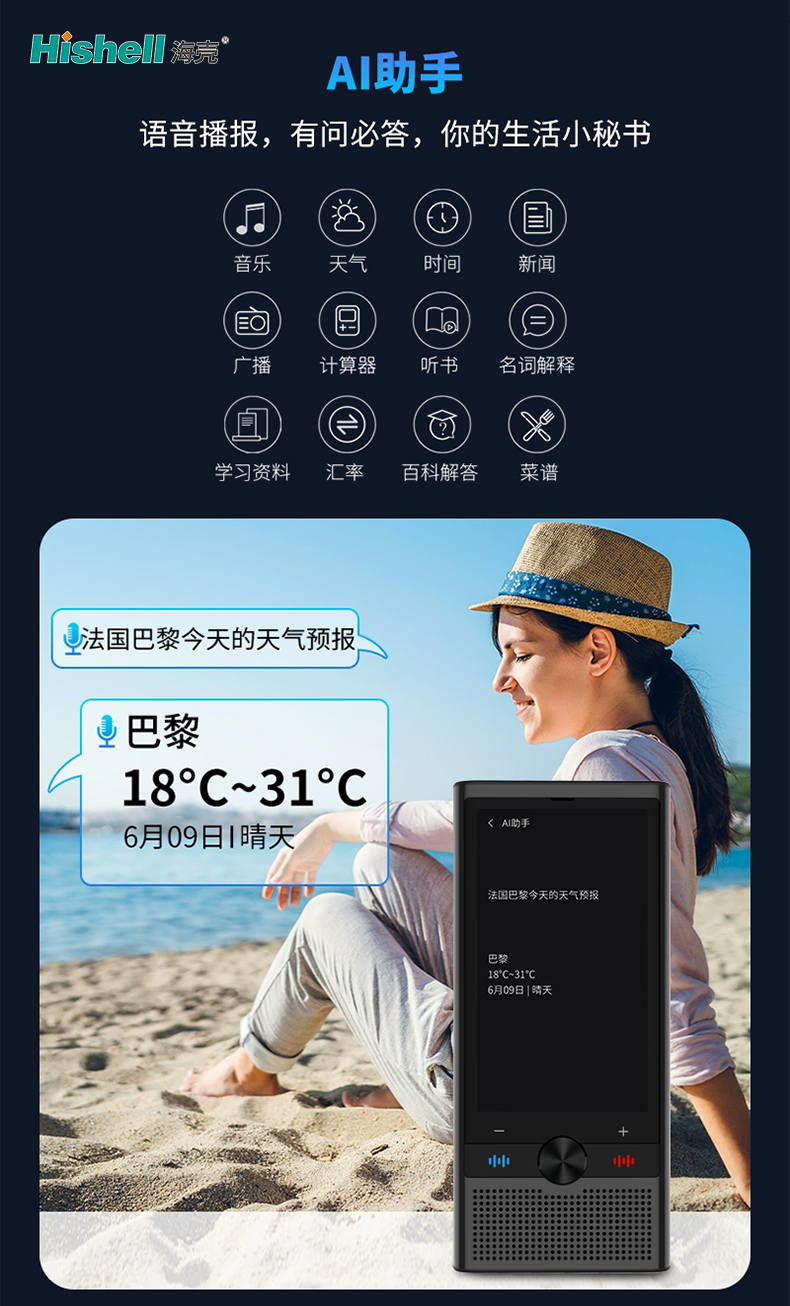 这款智能翻译机不仅是高效翻译工具,更是集多种实用功能于一体的生活小秘书,搭载智能AI助手,支持语音播报、有问必答,轻松满足日常各类需求。它打破语言壁垒,精准翻译多种语言,同时兼顾实用性与便捷性,让生活、学习、出行更省心。