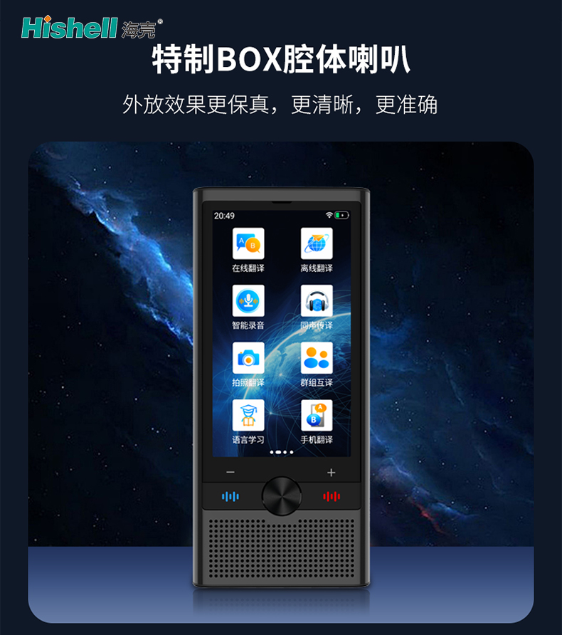 除核心外放优势外,翻译机兼顾高效与便捷,支持多语种实时互译,响应迅速且翻译精准,覆盖日常交流、商务洽谈、出行旅游等多种场景。机身设计小巧便携,操作简单易懂,兼顾实用性与体验感。特制BOX腔体喇叭与精准翻译算法相辅相成,既保证了声音的清晰传递,也确保了翻译的准确性,让跨语言沟通无需费力,轻松打破语言壁垒。