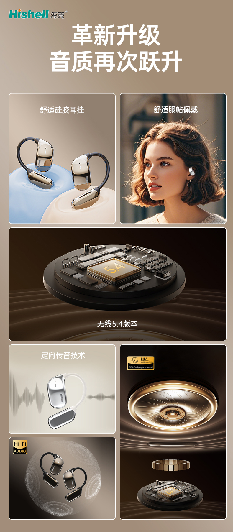 升级后的无线 5.4 版本,连接速度更快、信号更稳定,跨距离使用也不易断连;舒适硅胶耳挂设计,贴合耳廓弧度,久戴不压耳,运动、通勤时佩戴都服帖稳固。