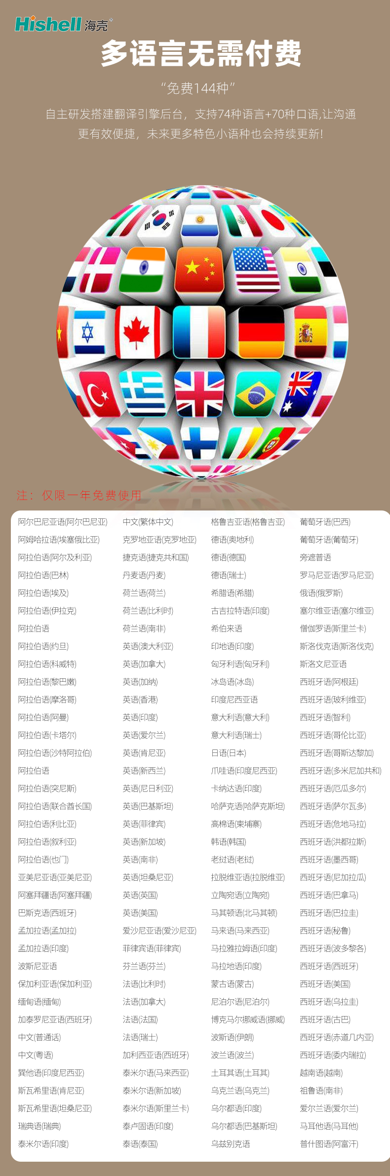 它最核心的优势在于免费 144 种语言翻译,覆盖全球主流语种与众多小众语言,无论是海外旅行问路、餐厅点餐,还是跨境商务洽谈、异国社交,都无需额外付费,轻松打破语言壁垒。而且,它摆脱了设备传递的繁琐,避免沟通中断,也无需担心多人使用时的卫生顾虑。