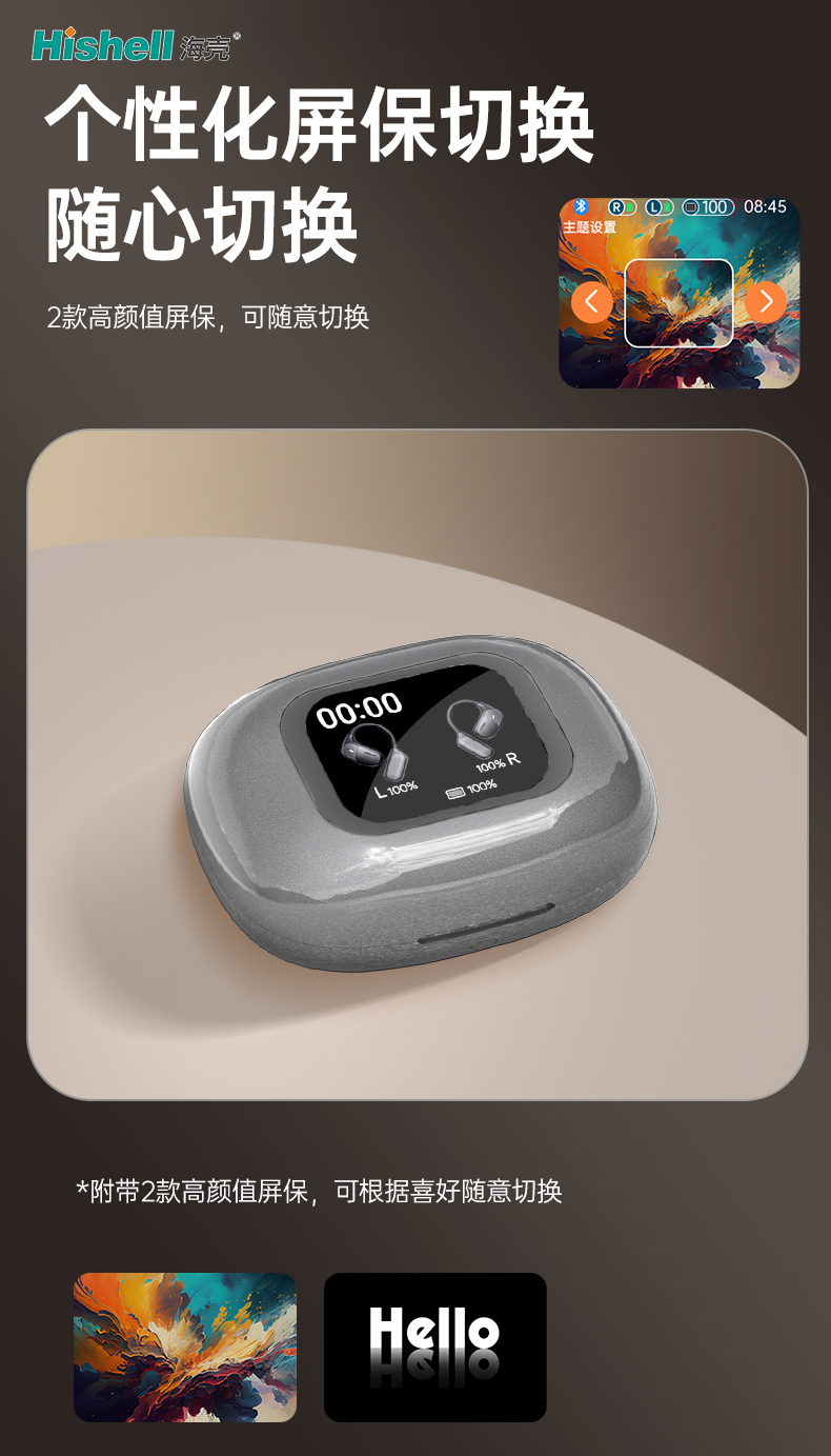 这款翻译耳机在实用功能之外,新增个性化屏保切换设计,内置 2 款高颜值屏保,可随心切换,让耳机不仅是沟通工具,更成为彰显品味的小物件。