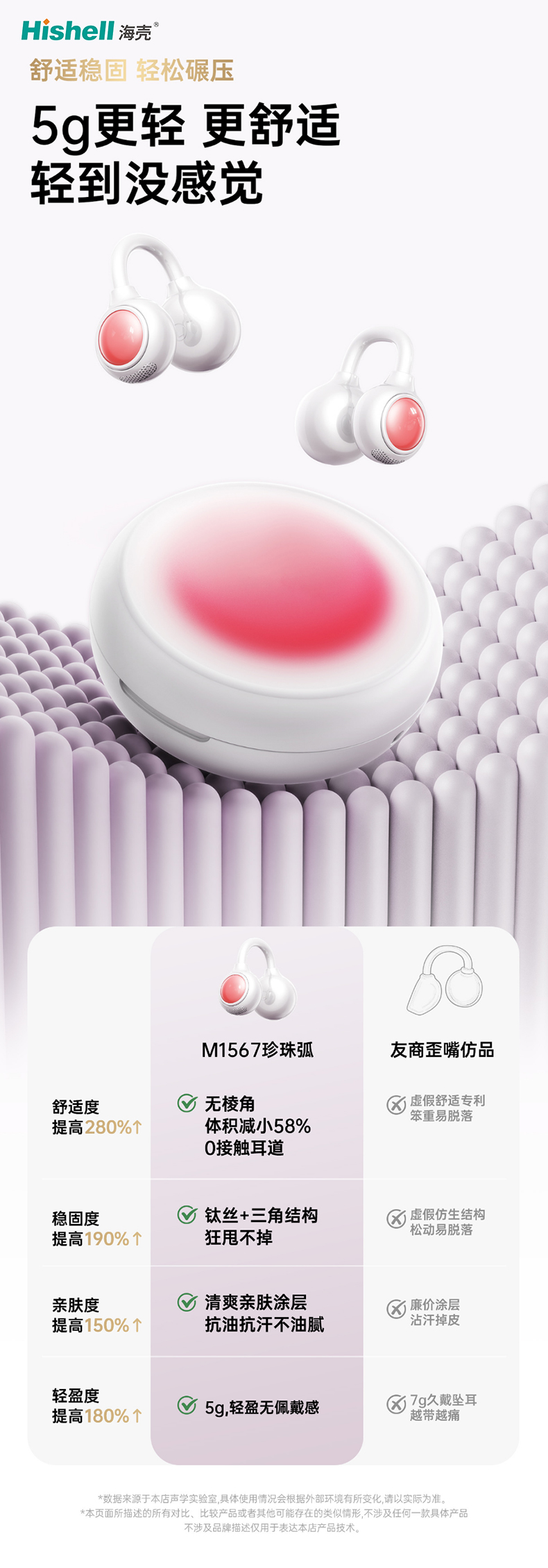 设计上突破传统,采用无棱角圆润造型,体积较普通翻译耳机减小58%,创新0接触耳道设计,不深入耳道、不挤压耳廓,对敏感耳道人群十分友好。同时搭载钛丝+三角稳固结构,韧性十足且贴合耳廓轮廓,狂甩、运动时也能牢牢固定,杜绝滑落尴尬。