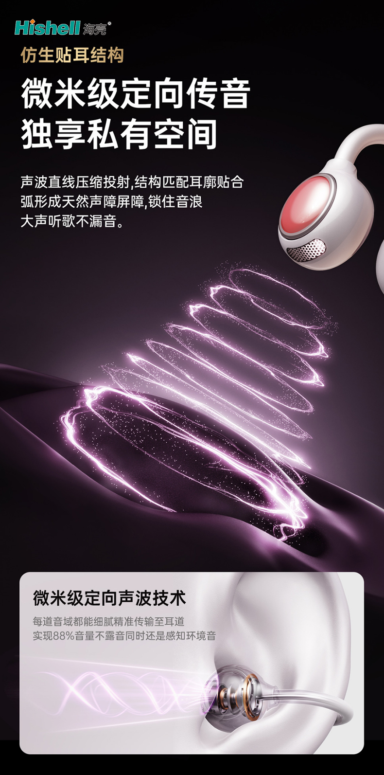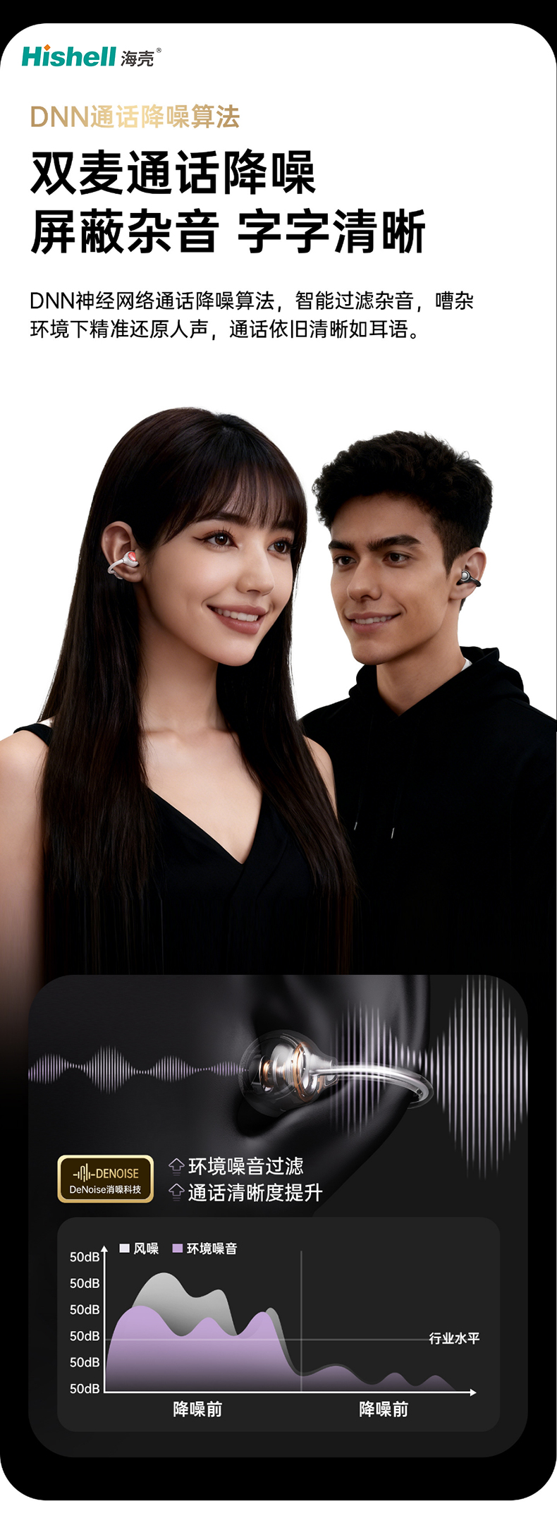 耳机配备导声双倍锁音技术与微米级定向传音,有效杜绝漏音,让你独享专属听觉空间,避免打扰他人。双麦通话降噪功能可智能屏蔽环境杂音,通话时字字清晰,无惧嘈杂场景。