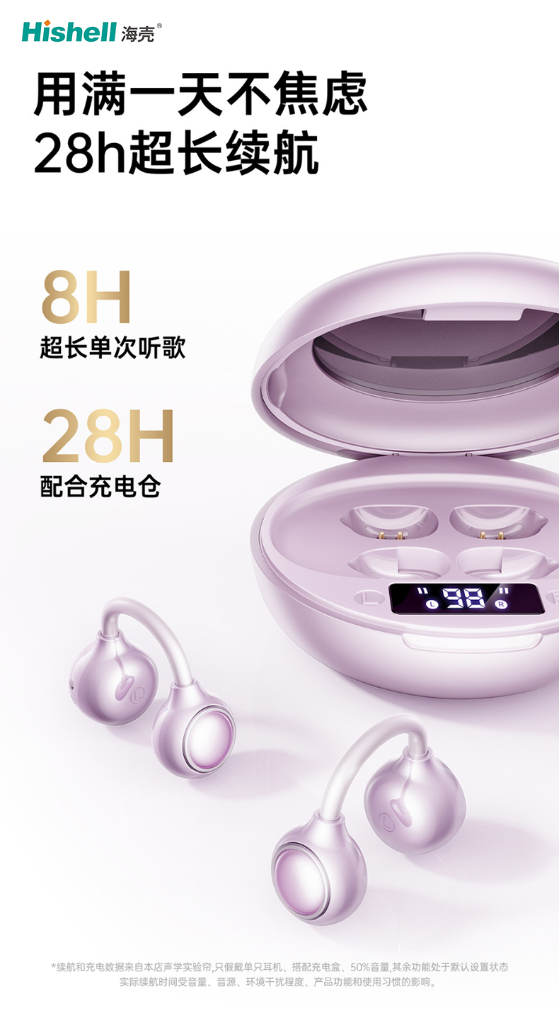 性能方面,采用全新数字蓝牙6.0芯片,传输稳定流畅,实现声画同步不延迟;续航实力出众,单次听歌可达8小时,搭配充电仓总续航长达28小时,满足日常通勤、长途出行等多种场景需求,轻松实现一耳打尽优质体验。