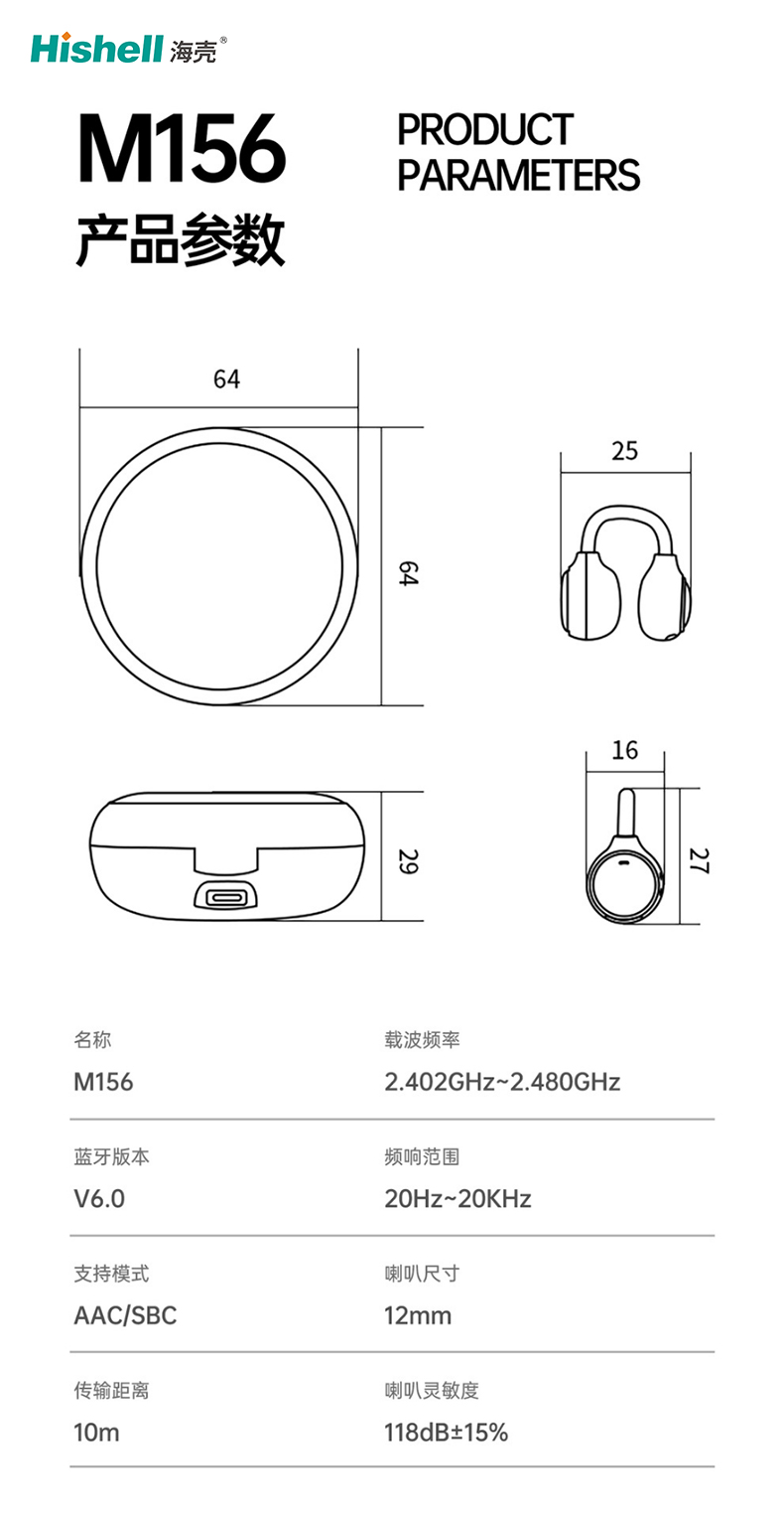 支持模式:AAC/SBC 喇叭尺寸:12mm