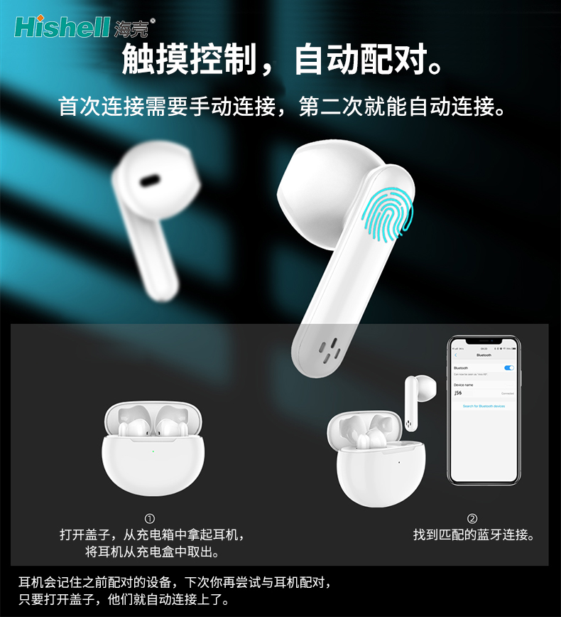 这款蓝牙耳机以便捷体验为核心,搭载灵敏触摸控制系统与智能自动配对功能,轻松解锁高效使用场景。操作无需繁琐按键,轻触耳机即可实现播放/暂停、切歌、接挂电话等操作,指尖轻动便能掌控节奏,适配日常通勤、运动、办公等多种场景。连接方面更显省心,首次使用只需开启耳机蓝牙并在设备端搜索配对,完成一次绑定后,后续打开耳机便会自动连接上次使用的设备,无需重复操作。它兼顾便捷性与实用性,音质清晰通透,续航持久耐用,为你带来无拘无束的听觉享受。