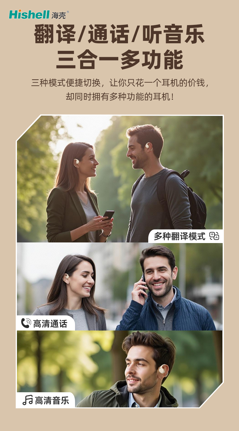 这款翻译耳机打破功能边界,实现翻译、通话、听音乐三合一,让你只需一副耳机,就能轻松应对多种场景需求,花一份钱享受多重价值。