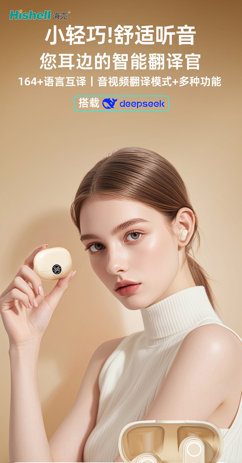 这款智能翻译耳机以“小轻巧”为核心设计,机身纤薄便携,佩戴贴合耳廓,久戴无压迫感,让舒适听音与高效翻译双向兼顾,成为你随身相伴的智能翻译官。依托DeepSeek强大算法加持,它实现164+种语言实时互译,覆盖全球主流语种及小众方言,精准破解跨语言沟通壁垒,无论是商务会谈、出国旅行还是跨境社交,都能让表达零障碍。