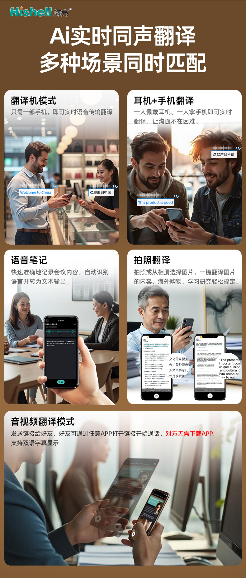 它支持多元翻译模式,灵活适配不同场景。翻译机模式极简便捷,仅需搭配一部手机,就能完成实时语音传输与翻译,无需复杂操作。耳机+手机组合模式更具针对性,一人佩戴耳机、一人手持手机,双向实时翻译,轻松解决双人跨语言沟通难题。