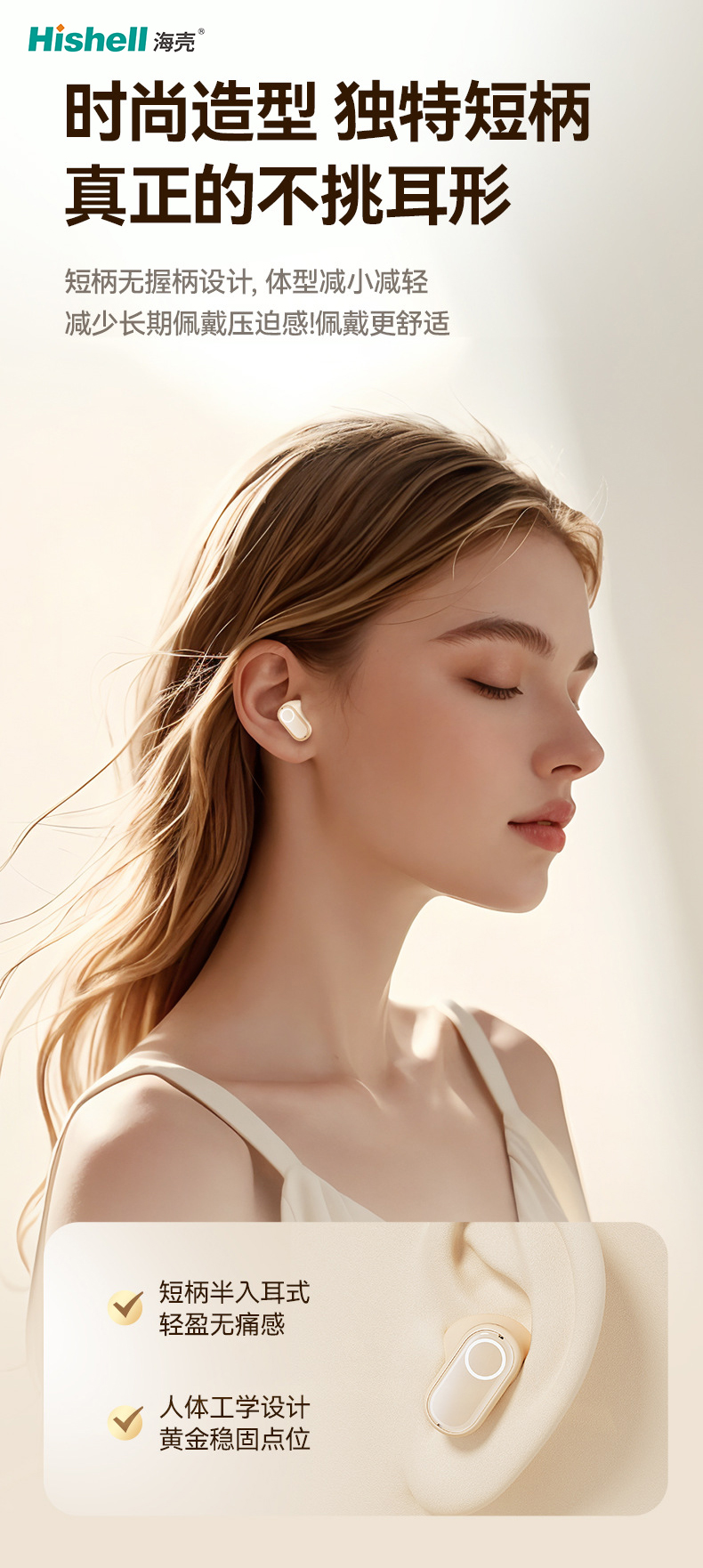 操作便捷省心,采用智能触控设计,轻轻一触即可切换曲目、调节音量,无需繁琐操作,轻松掌控音乐节奏。舒适半入耳式造型贴合耳型,亲肤材质温和无刺激,久戴不闷不痛,适配日常通勤、长时间办公等多种场景。