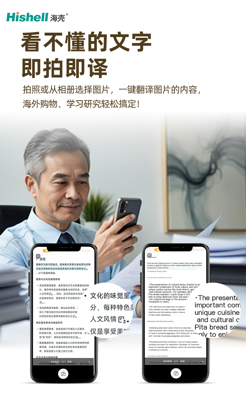 无论是海外购物时面对外文商品说明、退税单据,还是学习研究中接触的外文文献、专业资料,它都能快速搞定,帮你省去繁琐的手动输入步骤。音质清晰通透,日常听歌、通话同样表现出色,兼具实用与娱乐属性。小巧便携的设计,方便随身携带,无论出差、旅游还是日常通勤,都能成为你的随身翻译官,让跨语言交流与信息获取更轻松、高效!