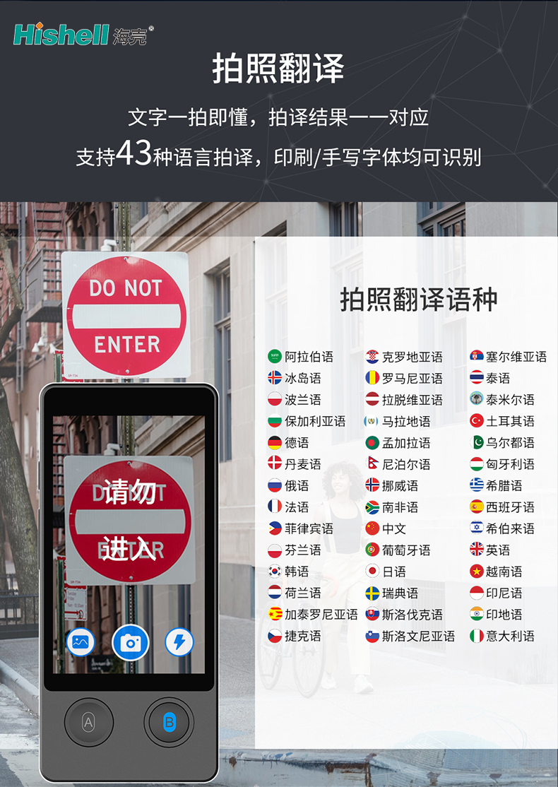 在识别能力上,该机表现出色,不仅支持43种语言的拍译需求,涵盖主流语种与小众语种,满足不同用户的跨语言使用场景,还可精准识别印刷字体与手写字体,无论是书籍、文档、路标等印刷文字,还是手写笔记、便签等手写内容,都能高效识别、准确翻译。小巧便携的设计搭配强大的拍译功能,让跨语言交流无需繁琐操作,随时随地享受精准、便捷的翻译服务。