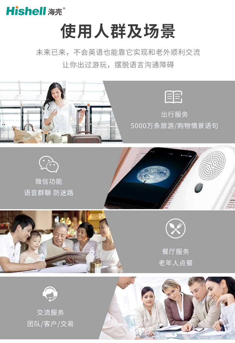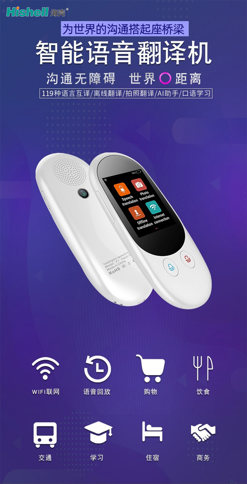 支持WIFI联网,翻译精度更高,搭配语音回放功能,方便核对关键信息。从购物砍价、餐饮点餐,到交通出行、酒店住宿,再到日常学习、商务洽谈,全场景适配,是出境旅游、跨境办公、外语学习的必备神器。