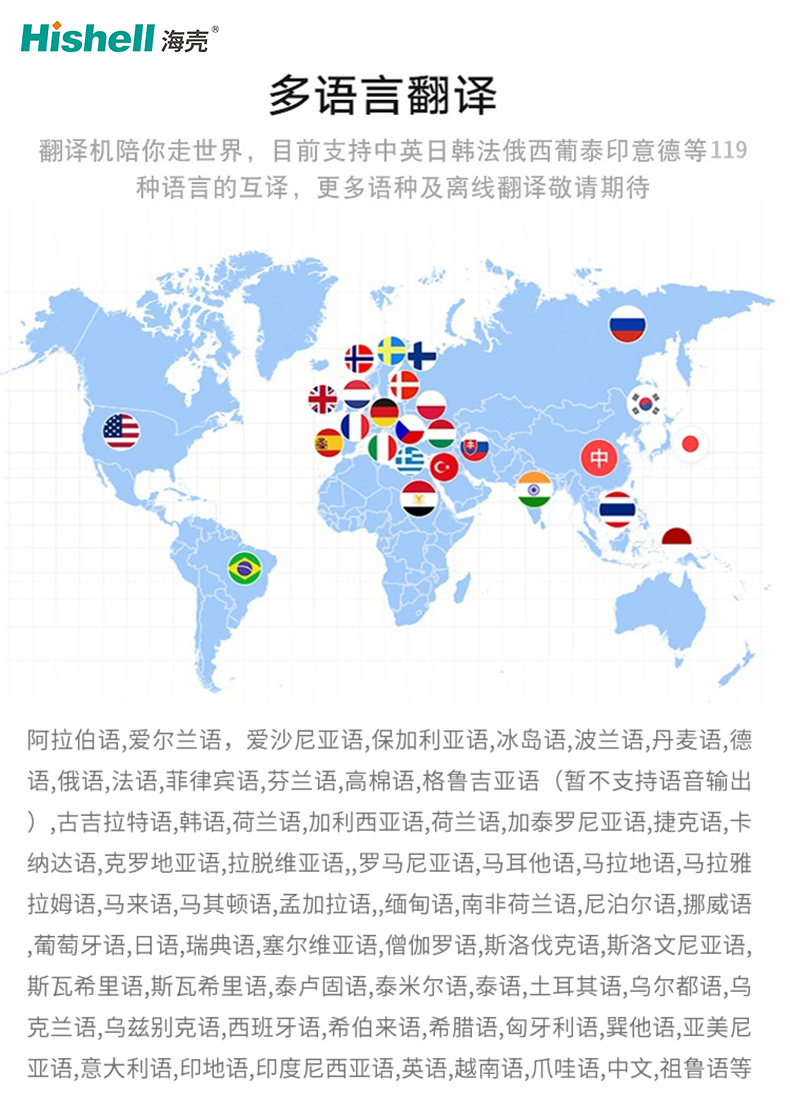 这款翻译机是你的跨国出行必备伙伴,陪你轻松走遍世界每一个角落。它具备强大的多语言互译能力,目前已全面支持中、英、日、韩、法、俄、西、葡、泰、印、意、德等119种语言双向互译,无论是日常交流、商务洽谈还是旅游问路,都能精准传递你的心意,打破语言隔阂。更值得期待的是,后续我们将持续更新语种库,并推出离线翻译功能,让你即便身处无网络环境,也能畅享流畅翻译体验。