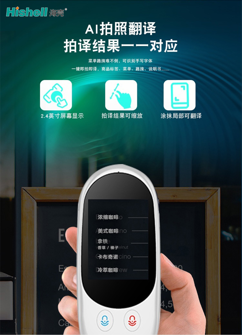 更令人惊喜的是,它支持手写字体识别,手写笔记、便签上的外文内容也能轻松翻译。配备2.4英寸清晰屏幕,译文显示直观,还可根据需求缩放大小,老人小孩也能轻松看清。针对局部复杂内容,支持涂抹选中翻译,精准聚焦需求,避免冗余信息干扰。操作简单便捷,无需复杂设置,随时随地开启高效翻译体验。