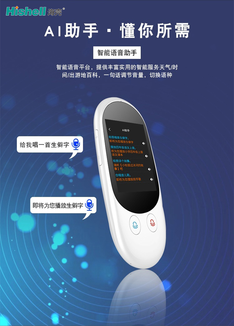这款智能翻译机,搭载先进AI助手系统,精准懂你所需,既是高效翻译工具,更是贴心的智能语音伙伴。依托强大的智能语音平台,它打破语言壁垒,支持多语种实时互译,无论是商务洽谈、境外旅行还是日常交流,都能让沟通无缝衔接。