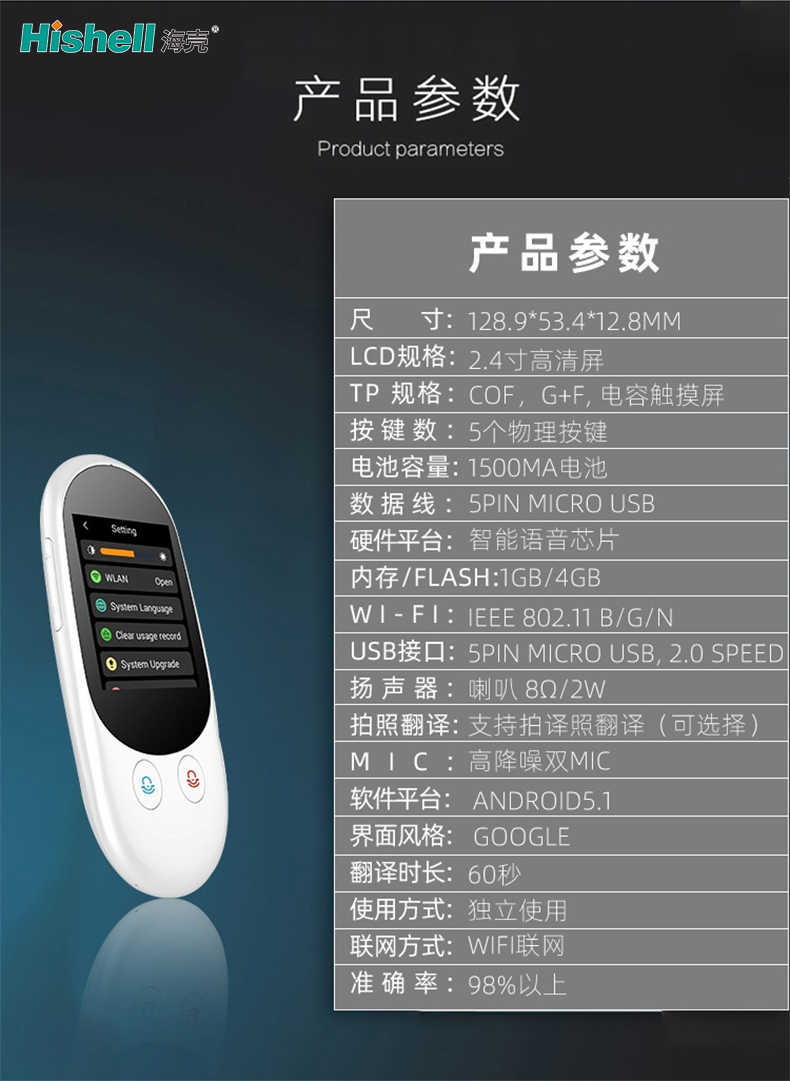 扬声器:喇叭8Ω/2W 拍照翻译:支持拍照翻译(可选择)