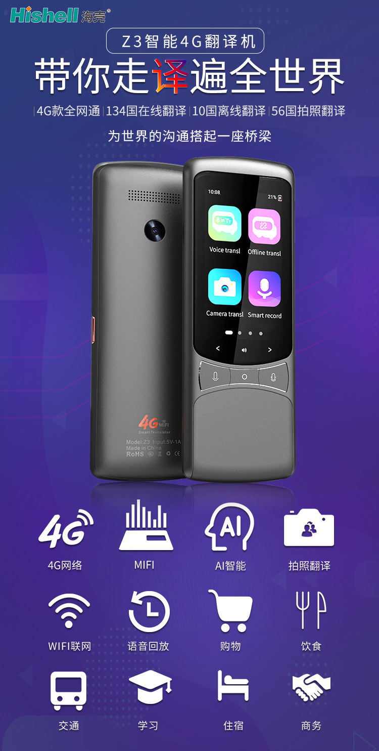 从旅行到商务,从日常交流到文化探索,Z3 智能 4G 翻译机以全面的功能,为不同场景下的世界沟通搭起一座便捷、高效的桥梁,让每一次跨语言交流都流畅无阻。