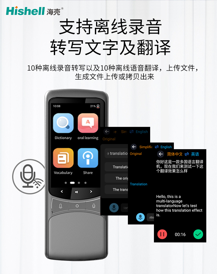 这款翻译机的离线录音功能,特别适合无网场景下的信息处理。它支持10 种离线录音转写和10 种离线语音翻译,不管是参加异国无网会议,还是记录当地人口语信息,按下录音键,就能将语音转成文字,还能同步翻译成目标语言,关键内容不遗漏。