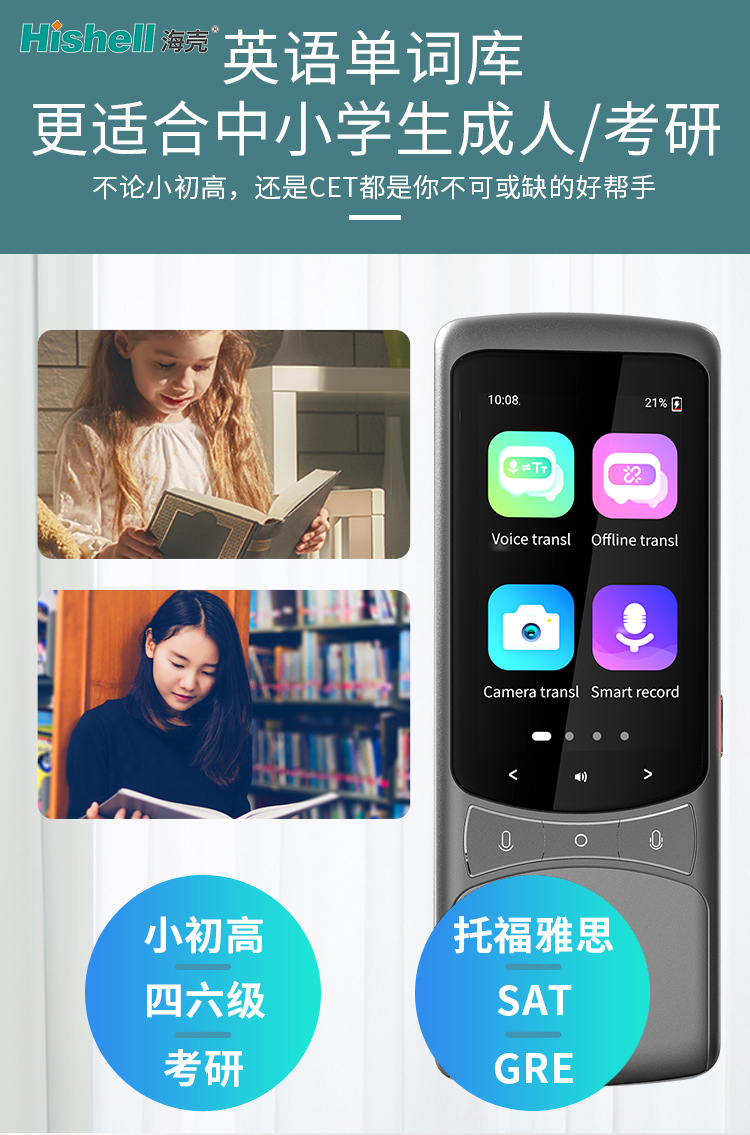 这款翻译机的英语单词库,堪称全年龄段英语学习者的好帮手,不管是中小学生、成人,还是备战考研的人群,都能从中受益。