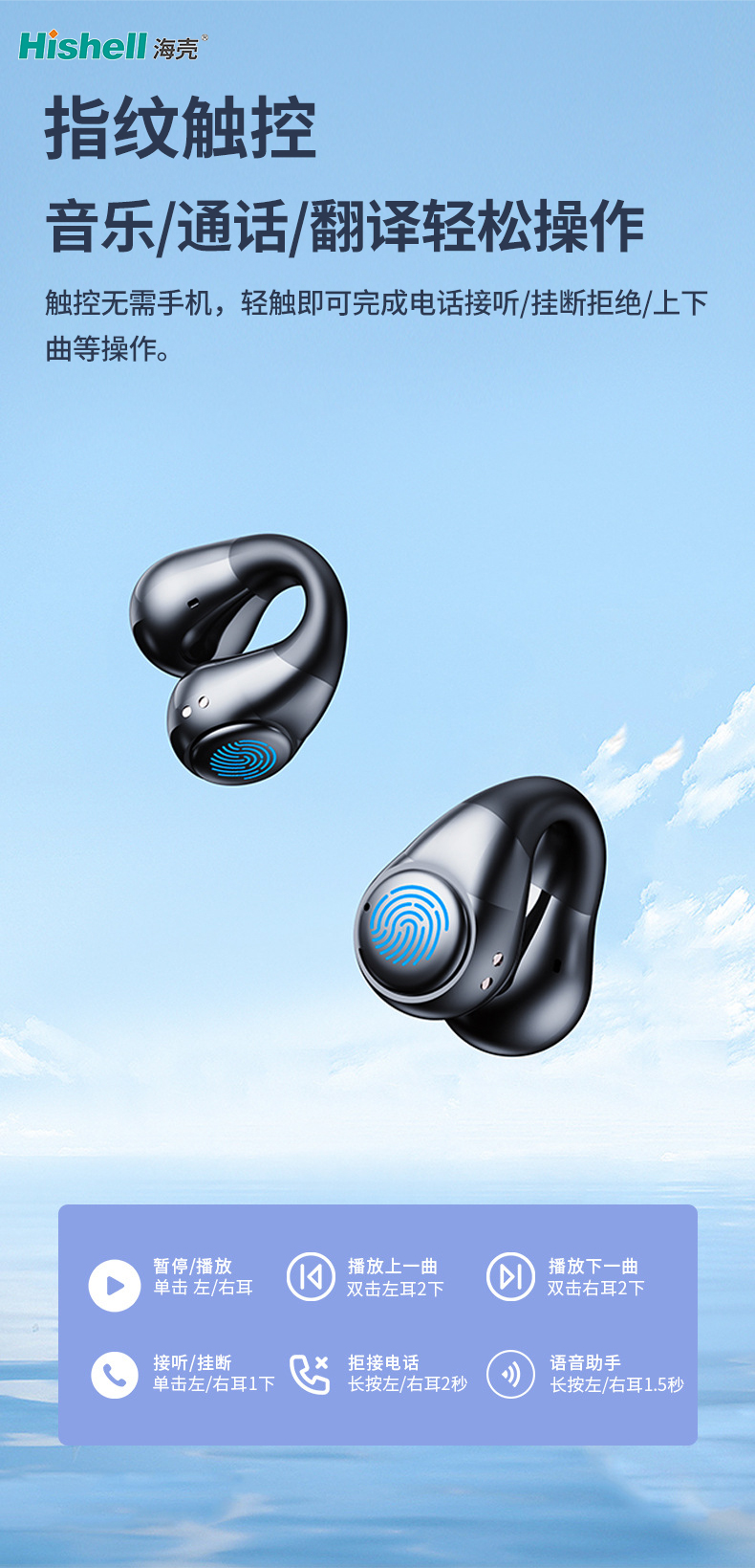 这款翻译耳机搭载便捷的指纹触控功能,无需依赖手机,轻触即可切换音乐、通话、翻译模式,操作高效又省心。