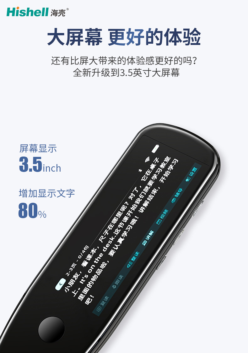 还有比屏大带来的体验感更好的吗?这款扫译笔给出了答案——全新升级3.5英寸大屏幕,文字显示量直接提升80%。宽屏视野下,单词释义、长句翻译完整呈现,无需反复滑动,学生查词、职场人看外文资料都更省心。