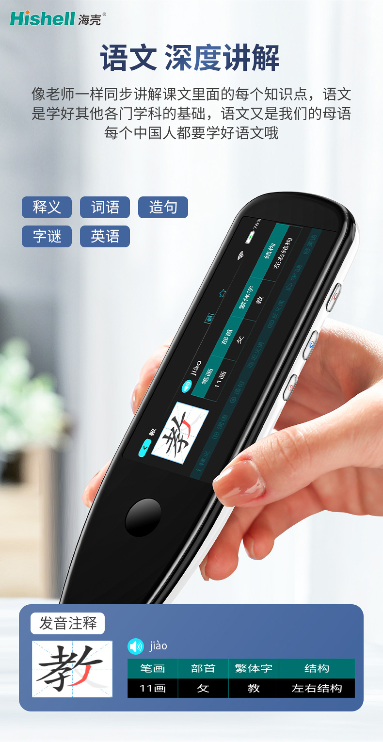 这款智能扫译笔是语文学习的好帮手,像老师般同步讲解课文知识点,从段落主旨到字词细节全覆盖。语文是学科基础更是母语根基,有它助力,轻松吃透重难点,夯实语文功底。它还兼具丰富功能:遇到生词即刻释义,提供精准词语解析、实用造句范例,趣味字谜拓展更是锦上添花。切换英语模式,扫描就能查词翻译,兼顾双语学习需求。小巧便携,课堂课后随时用,让学习高效又省心,帮你轻松攻克语英难题。