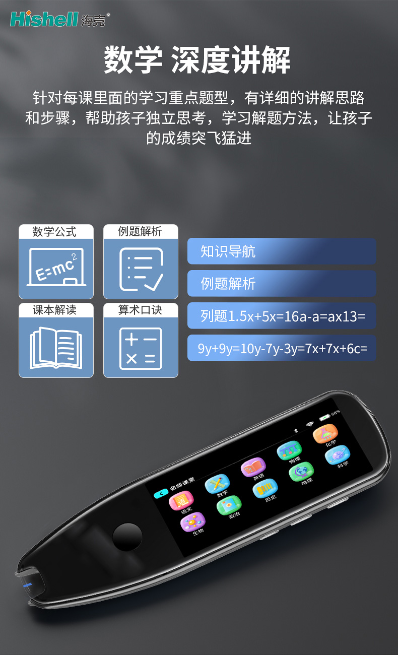 这款智能扫译笔是孩子数学提分的秘密武器。针对课本每课重点题型,它能给出细致的讲解思路与清晰步骤,引导孩子独立思考,掌握核心解题方法,助力成绩突飞猛进。数学公式一扫即查,解析精准易懂;课本内容深度解读,衔接课堂知识;经典例题细致拆解,攻克学习难点;算术口诀趣味呈现,夯实计算基础。从基础运算到题型突破,全方位覆盖学习需求,让孩子告别解题困惑,自主高效学数学。