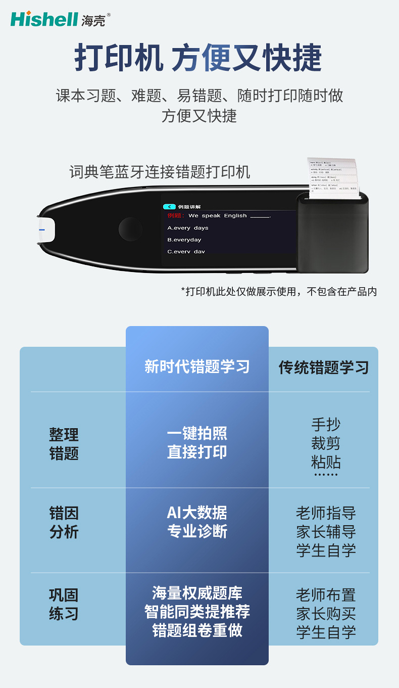 更实用的是,它支持蓝牙快速连接错题打印机,遇到课本习题、难题或易错题,扫描收录后一键就能打印。无需手抄,随时打印随时做,大幅节省整理时间,让错题复习更高效。小巧便携的机身,课堂、书房都能用,学习效率轻松翻倍。