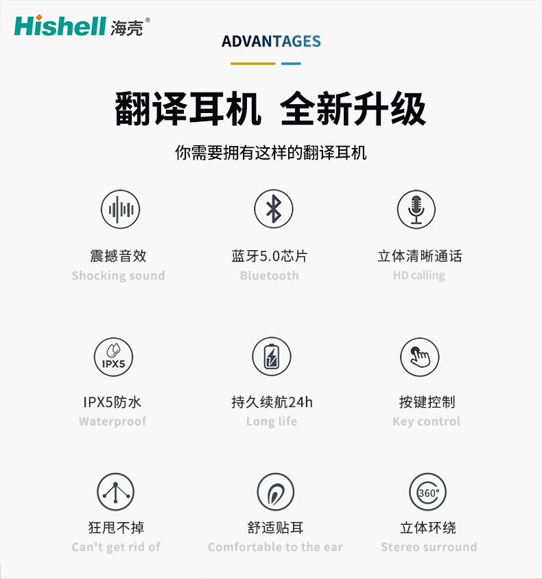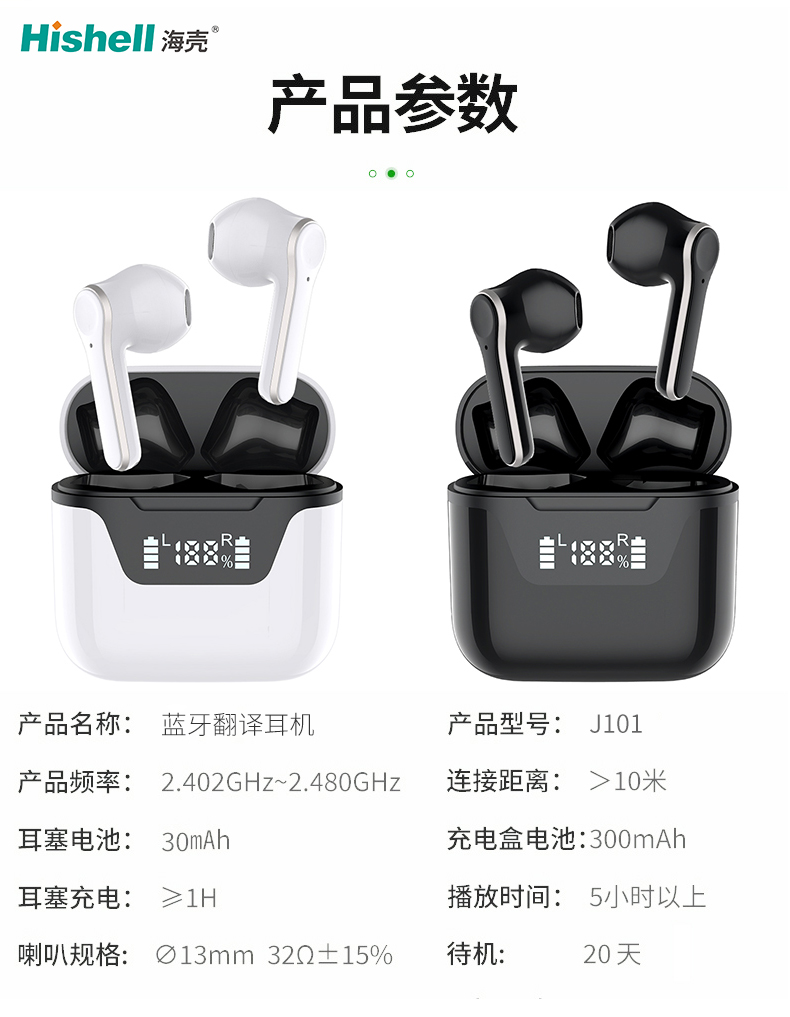 产品名称:蓝牙翻译耳机 产品型号:J101
