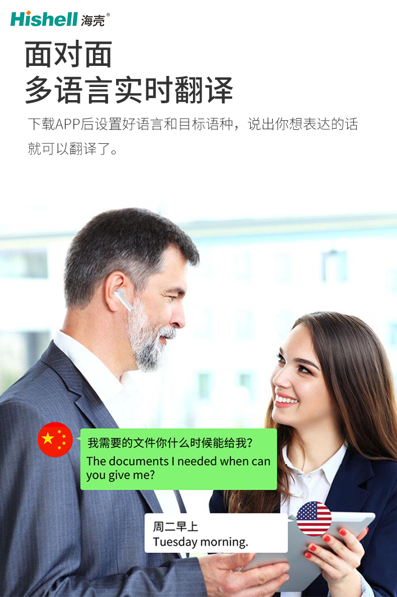 这款翻译耳机,让面对面跨语言交流告别障碍。无论是涉外洽谈、异国交友还是旅行沟通,它都能成为你的“即时翻译官”。操作格外简便,只需先下载配套APP,在界面中选定源语言与目标语种,接下来无需繁琐操作——你只需自然说出想表达的内容,耳机便会瞬间完成翻译并清晰播报。精准的语音识别与高效译转技术,确保语义完整传递,反应迅速不拖沓,让对话流畅自然,就像与母语者交流般轻松,为你的跨语言场景提供有力支撑。