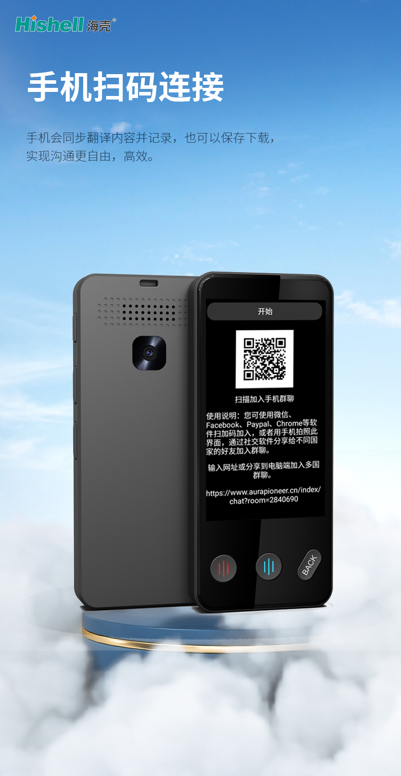 这款翻译机搭载便捷的手机扫描连接功能,轻松扫码即可实现设备联动。连接后,手机能实时同步翻译内容,还可一键记录对话译文,后续随时查看、保存或下载,避免重要信息遗漏。