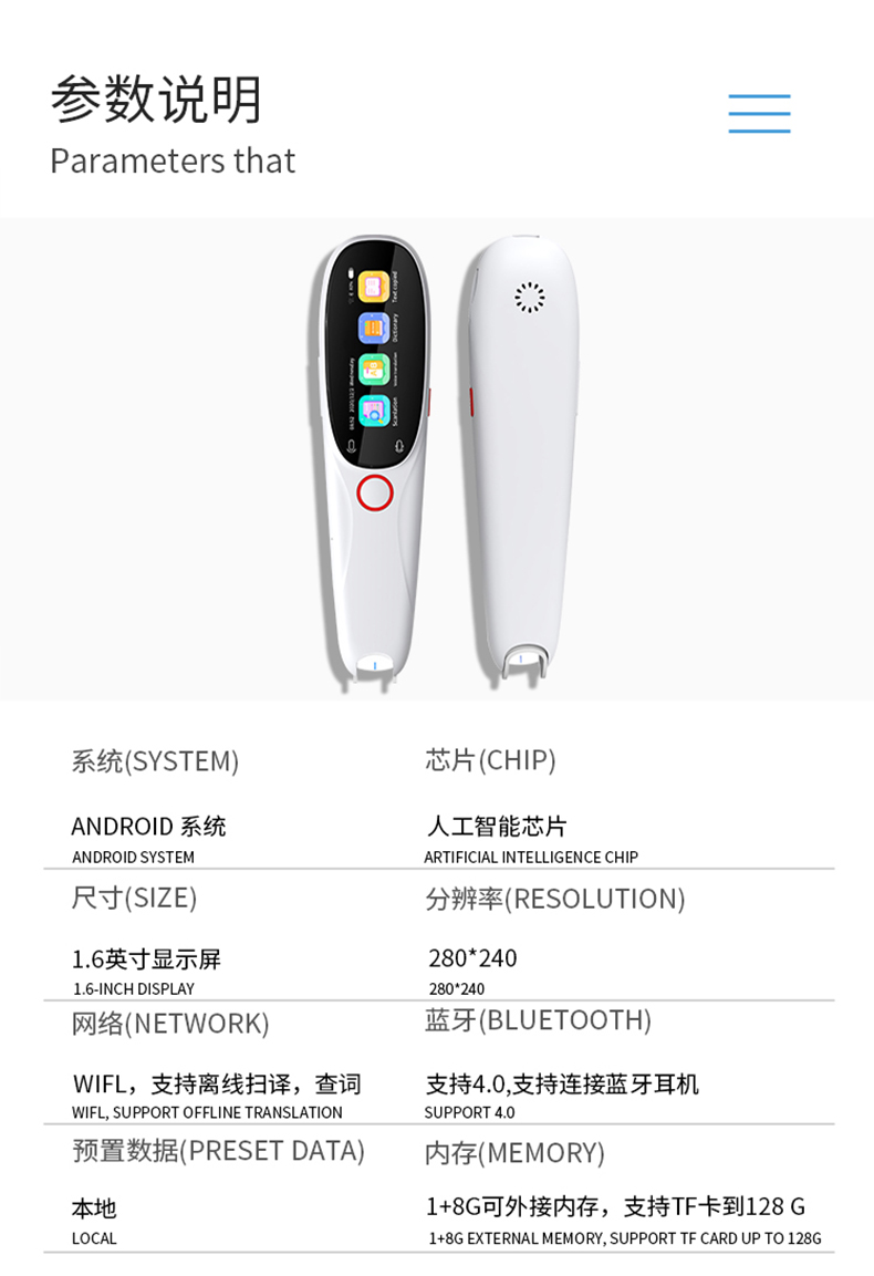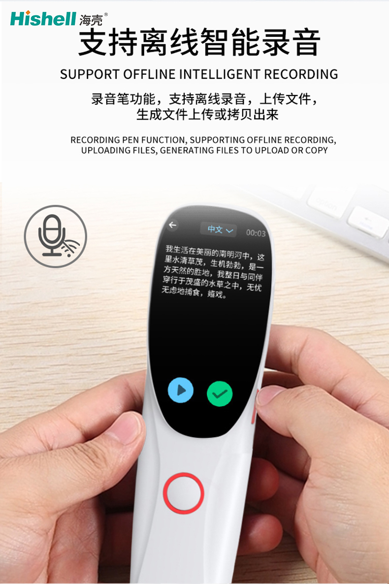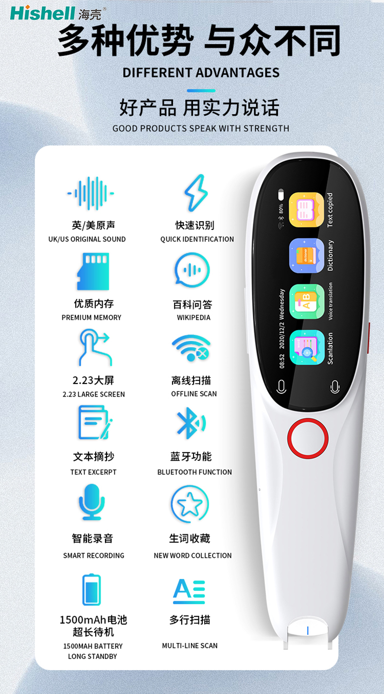 这款智能翻译笔是跨语言沟通与学习的必备神器,核心优势拉满!支持多国语种扫描翻译,更搭载15种语言离线扫描功能,无网络环境下也能精准翻译,出差旅行、海外研学无需担忧网络限制。它还具备图片转文字与语音功能,海报、说明书、书籍等图文内容,一扫即能提取文字并同步朗读,理解更轻松。独特的多行扫描设计,可一次性识别整段文本,告别逐行扫描的繁琐,大幅提升效率。机身轻巧便携,操作简单,识别准确率高,无论是日常交流、工作办公还是语言学习,都能带来高效便捷的翻译体验。