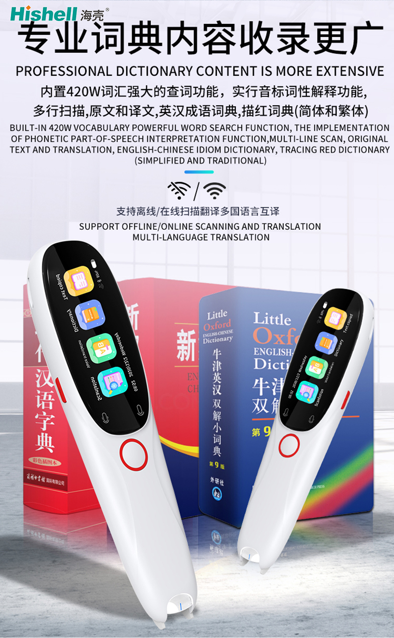 这款翻译笔以专业级词汇储备为核心优势,内置高达420万条词汇,覆盖多领域常用及专业词汇,查询精准高效。配备完整音标、词性标注及详尽释义,搭配英汉成语词典与简繁双体描红词典,兼顾日常使用与深度学习需求。支持多行扫描功能,快速识别原文并同步呈现译文,操作便捷。更实现离线、在线双模式切换,离线状态下仍能稳定翻译,同时支持多国语言互译,无论是日常交流、学习备考还是跨境出行,都能提供精准、便捷的翻译支持,是兼具实用性与专业性的智能翻译工具。