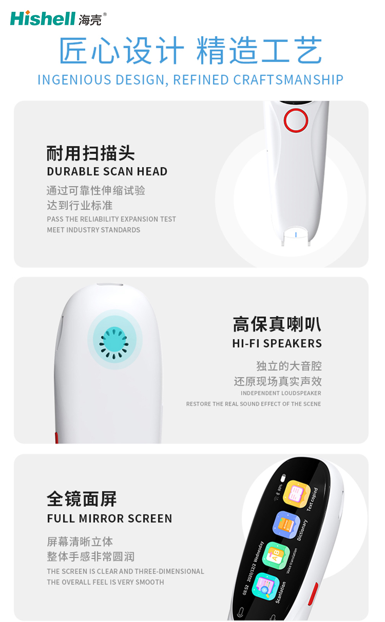 这款翻译笔秉持匠心设计理念,以精造工艺雕琢每一处细节,兼具实用性能与质感体验,成为学习与出行的优质伴侣。其搭载耐用扫描头,经过严苛的可靠性伸缩试验,各项指标均远超行业标准,频繁使用也能保持精准识别,轻松应对书籍、试卷、海报等多种场景的扫描需求。