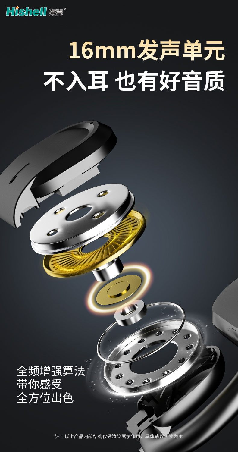 这款不入耳蓝牙耳机,打破“不入耳=音质差”的固有认知,核心搭载16mm大尺寸发声单元,凭借更大振膜面积带来澎湃动力,低频下潜深邃有弹性,中频人声清晰细腻,高频通透不刺耳,即便不塞进耳道,也能呈现饱满立体的音质。更加持专业全频增强算法,精准优化各频段音频细节,实现声域全覆盖,无论是激昂的摇滚、舒缓的古典还是清澈的人声,都能精准还原。佩戴时轻盈贴合耳廓,久戴无胀痛感,兼顾舒适与听觉享受,通勤、运动、办公等场景都能让你沉浸式感受全方位出色的听觉盛宴。