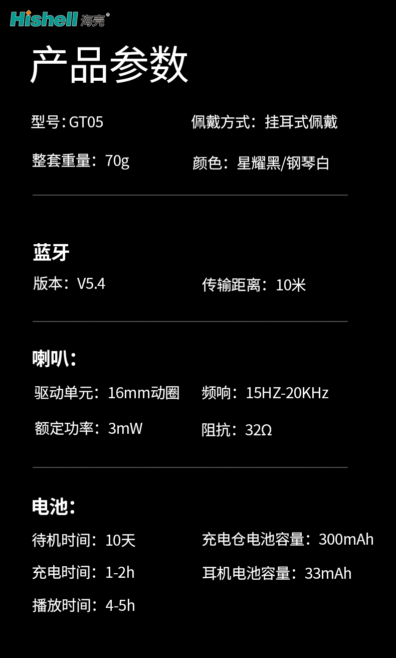 型号:GT05 佩戴方式:挂耳式佩戴