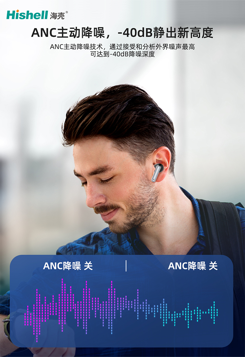 这款蓝牙耳机以ANC主动降噪技术为核心,将静谧体验推向新高度,降噪深度最高可达-40dB。它通过内置高精度麦克风实时接收并分析外界噪声,精准生成反向声波抵消杂音,无论是地铁轰鸣、办公室喧嚣还是飞机引擎声,都能高效阻隔,让你瞬间沉浸纯净音频世界。