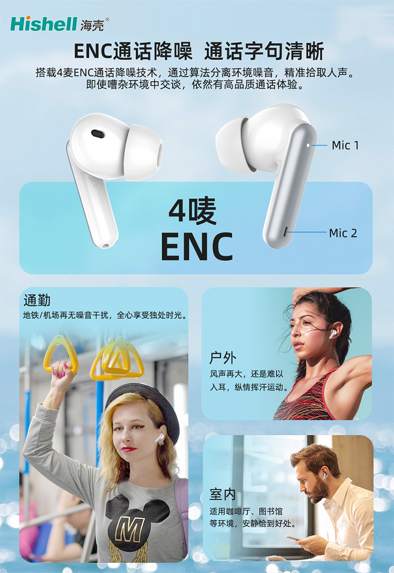 这款蓝牙耳机以卓越ENC通话降噪性能为核心,搭载专业4麦ENC通话降噪技术,通过智能算法精准分离环境噪音与人声,高效拾取清晰人声,让每一次通话都字句分明。无论身处何种嘈杂场景,都能给到高品质通话体验。通勤时,地铁的轰鸣、机场的喧嚣都能被有效隔绝,让你在奔波中也能拥有纯粹独处时光;户外运动时,哪怕风声呼啸,也难以侵入听觉,尽情挥汗无需被噪音打扰;身处咖啡厅、图书馆等室内场景时,它能精准把控降噪尺度,营造恰到好处的安静氛围,兼顾舒适聆听与环境感知。