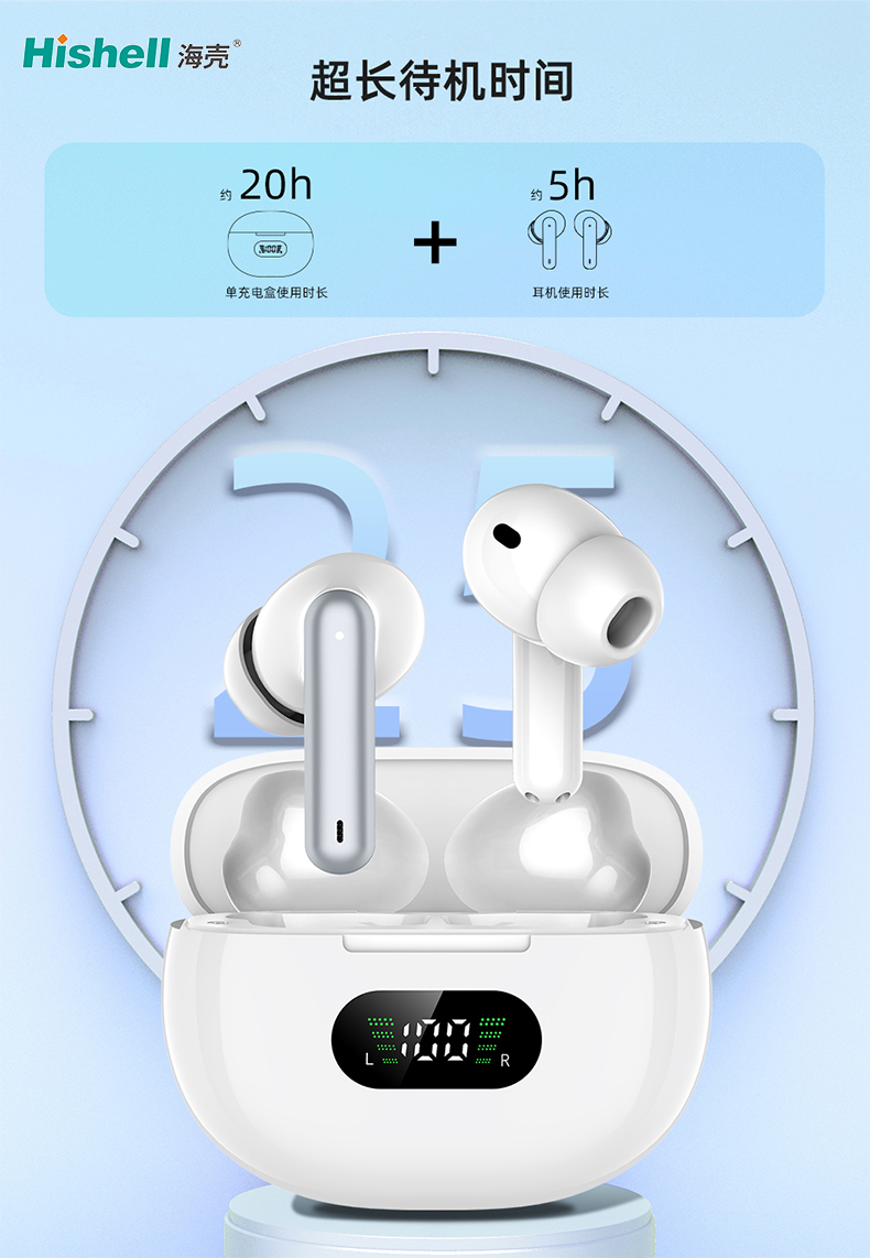 这款真无线蓝牙耳机以超长待机为核心亮点,搭配充电盒可实现约20小时连续使用,单耳单次充电也能畅享约5小时沉浸式聆听,彻底告别频繁充电的烦恼。无论是日常通勤、全天办公,还是短途旅行,都能轻松满足全天候用机需求。