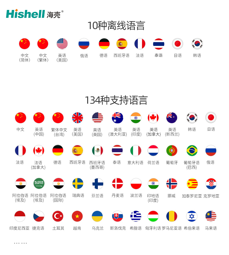 10种离线语言:简体中文、繁体中文、英语(美国)、俄语、德语、西班牙语、法语、泰语、日语、韩语