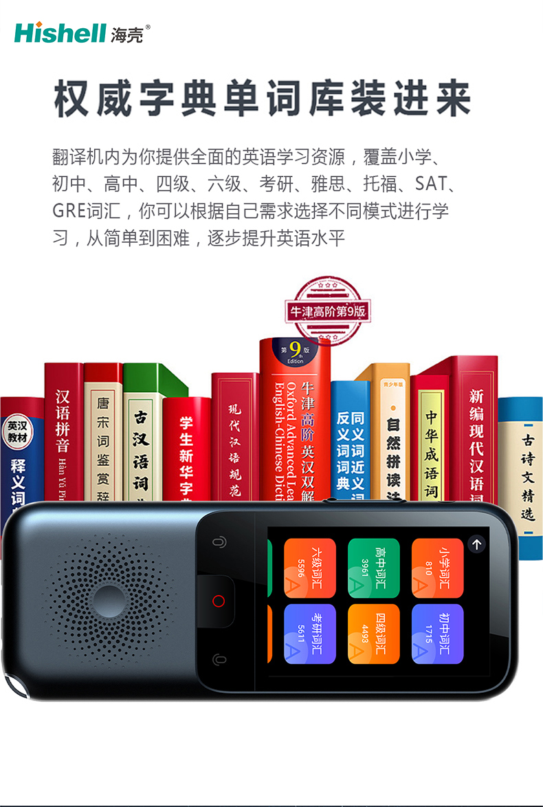 想系统积累英语词汇、稳步提升英语水平?这款翻译机内置权威字典单词库,装下了全面的英语学习资源,从小学基础词汇,到初中、高中同步考点词,再到四级、六级核心词,乃至考研、雅思、托福、SAT、GRE 等高阶备考词汇,全阶段需求都能满足。